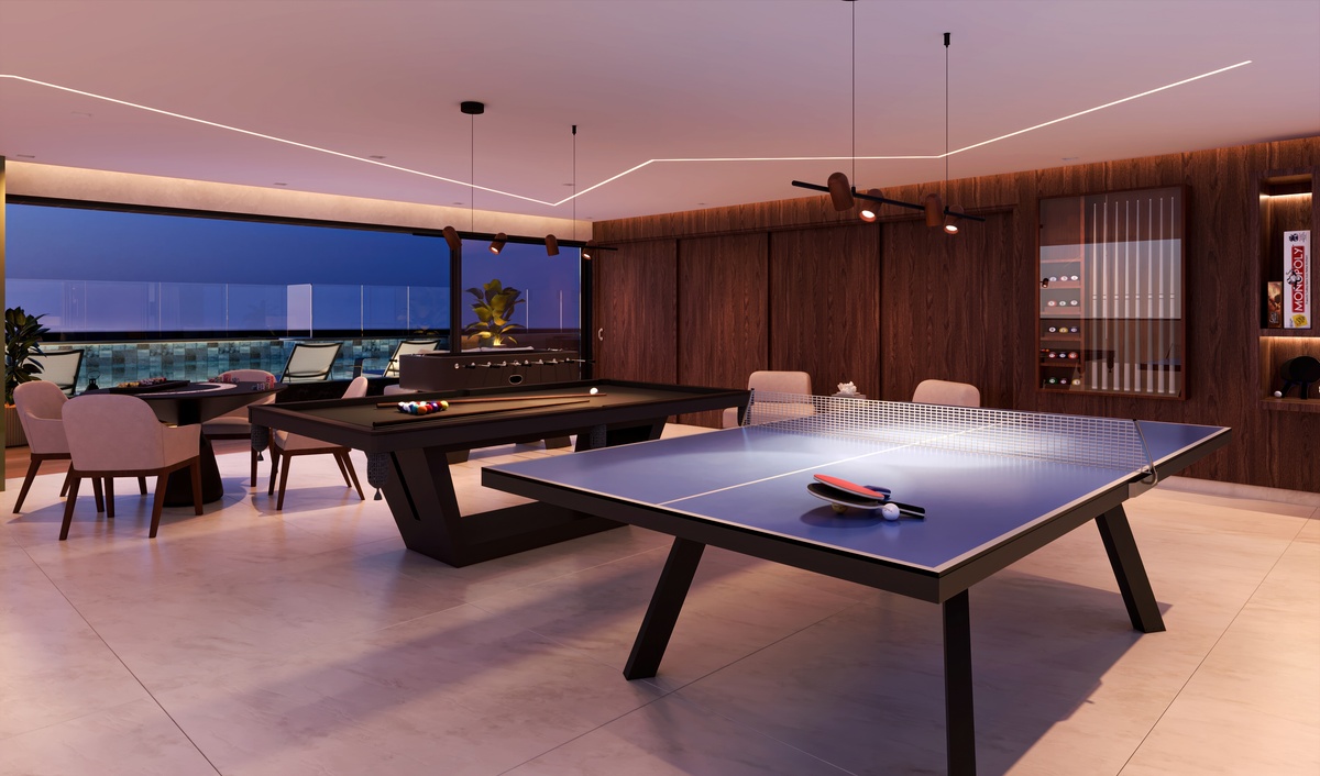 Na cobertura, um incrível espaço para se divertir, relaxar ou simplesmente contemplar a linda vista.
